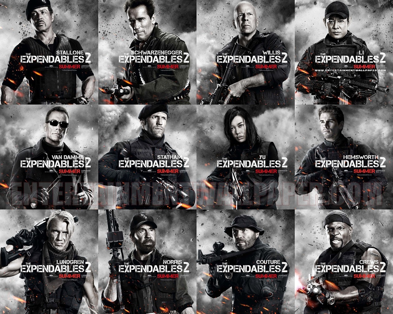 Chega a vez dos grandes astros dos filmes de ação estrelarem a mesma produção: são Os Mercenários 2. No elenco Sylvester Stallone, Bruce Willis, Arnold Schwarzenegger, Jason Statham, Chuck Norris, Liam Hemsworth, Jet Li e Jean-Claude Van Damme.