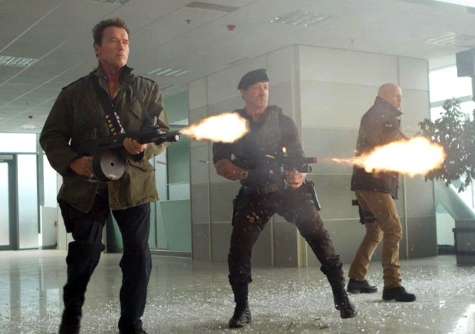 E Os Mercenários 2 – Sylvester Stallone, Bruce Willis, Arnold Schwarzenegger, Jason Statham, Chuck Norris, Liam Hemsworth, Jet Li e Jean-Claude Van Damme – continuam abalando as estruturas do Avenida!